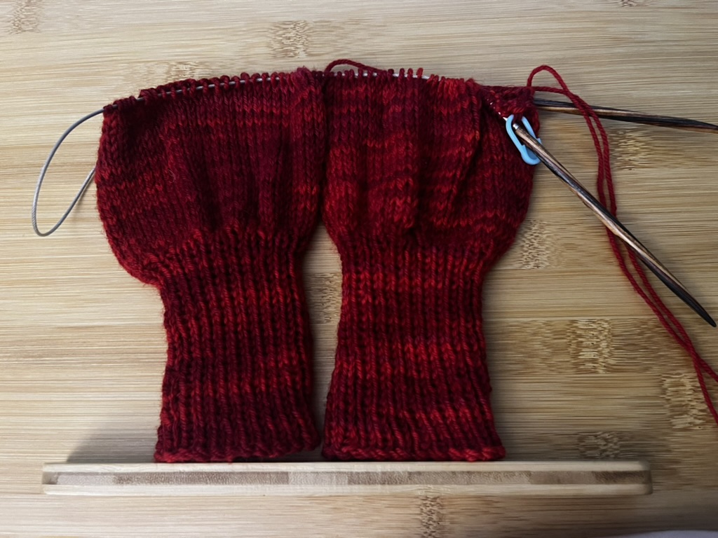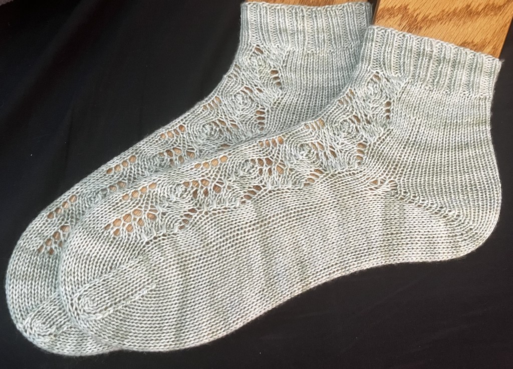 This is the first time I’ve finished a pair of socks in . . . a while. But they went well and were fun, so I think I’ll be going back to more of them. Goodness knows I have enough sock yarn waiting to be used.