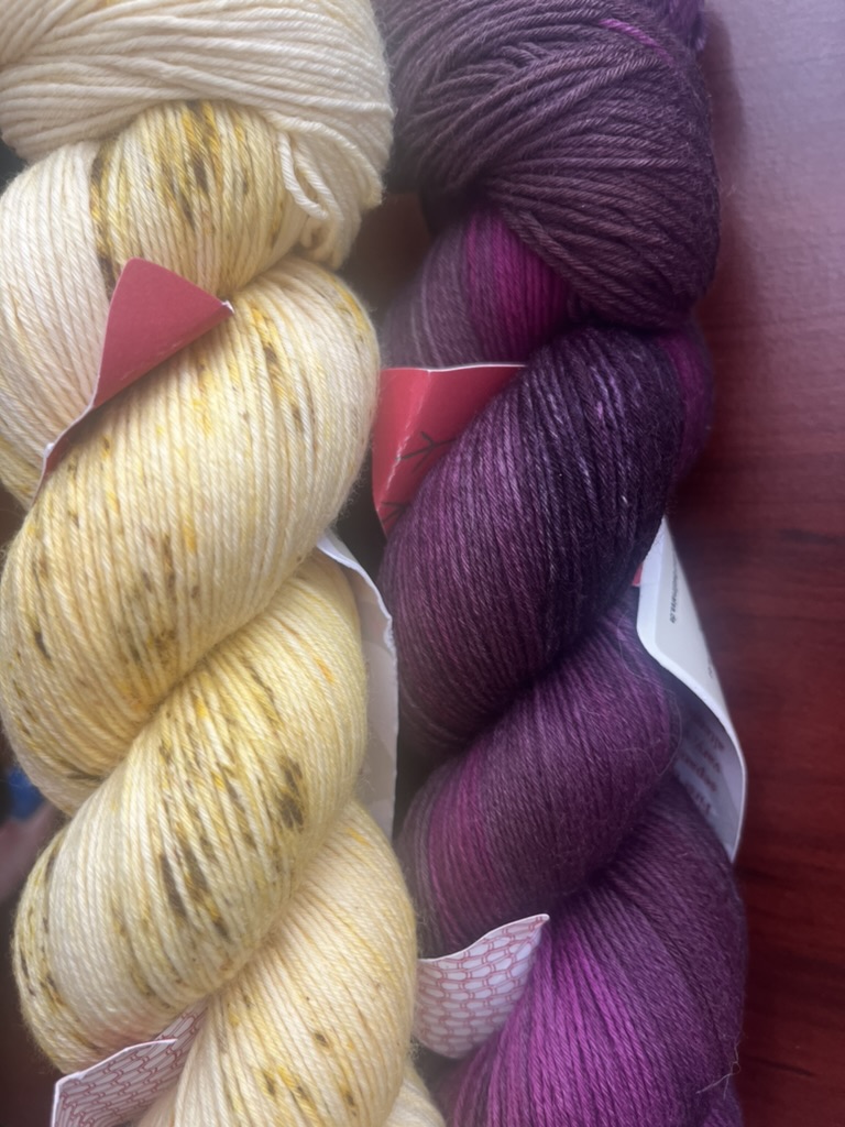 I’m going to make it from a beautiful speckled yellow and even more beautiful variegated purple / burgundy: