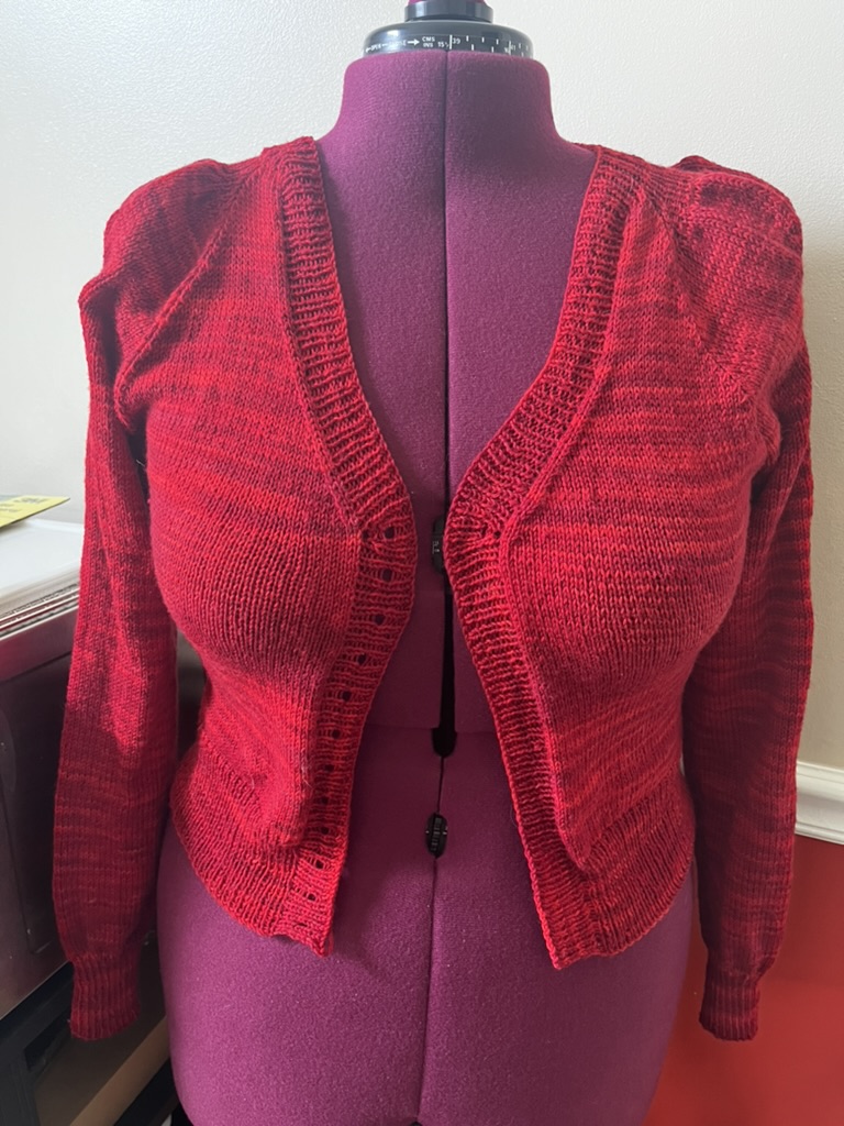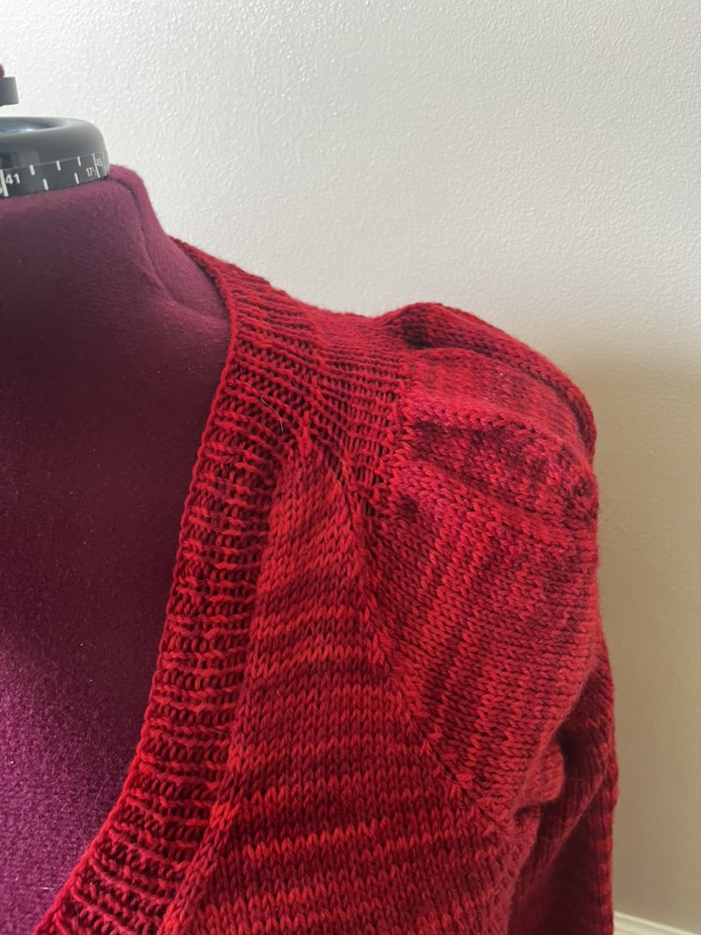 The sleeve puffs? Are fabulous. Honestly, they make me want to knit another one, because I just love the construction of them, I’ll definitely be knitting more patterns by the designer, because this one is lovely and elegant in its finished version.