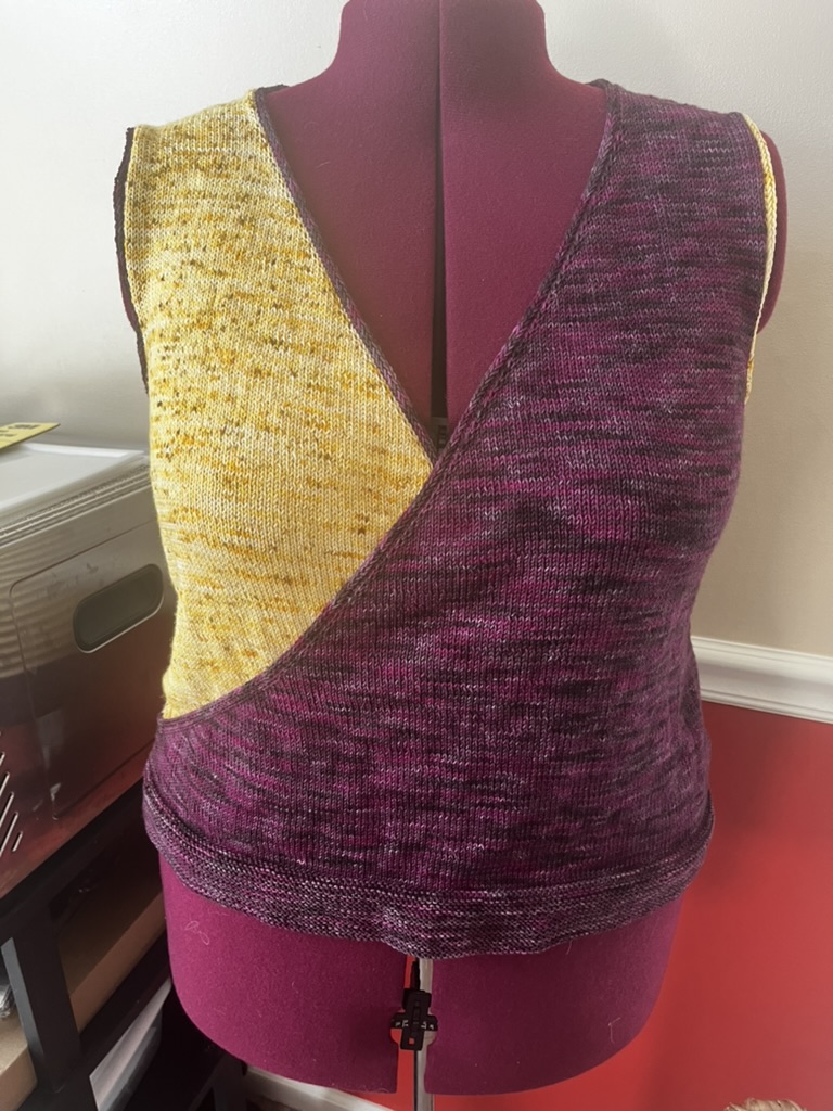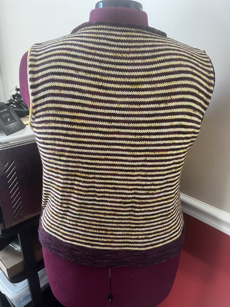 Here’s the pattern sample of the sweater, sleeveless as I intend to make it.